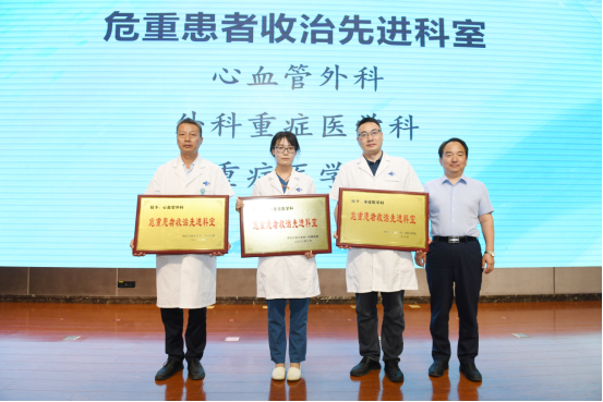 马现仓副院长为危重患者收治先进科室心血管外科、外科重症医学、重症医学科颁奖