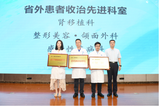 冯广林副书记为省外患者收治先进科室肾移植、整形美容颌面外科、感染性疾病科颁奖