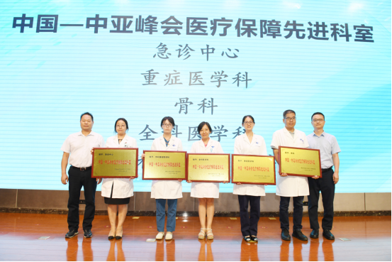张谞丰副院长、邹余粮院长助理为中国-中亚峰会医疗保障先进科室急诊中心、重症医学科、骨科、全科医学科、外科重症医学科颁奖