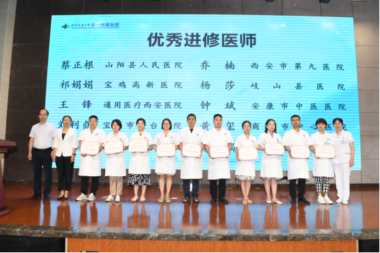 党委委员付军科、蒋玉梅,许庆丽主任分别为2022-2023年优秀进修医师蔡正根(肿瘤内科)、乔楠(神经内科)、祁娟娟(消化内科)、杨莎(妇产科)、王锋(急诊中心)、钟斌(结构性心脏病科)、刘利贞(麻醉手术部)、黄玺(肾脏内科)、任聪云(医学影像科)、蔡朋瑞(神经内科)颁发奖状。