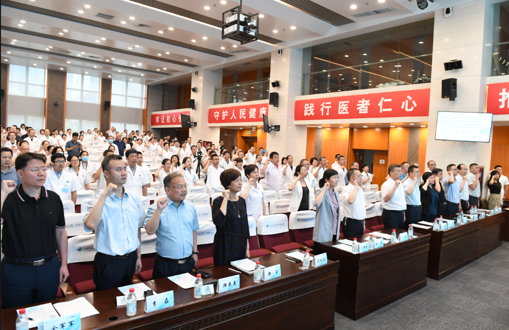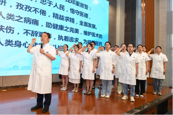 之后,在马现仓副院长的带领下,新入职的医生代表进行了庄严的入职宣誓,重温了希波克拉底的庄严誓言,他们将作为新一代的医务工作者,为医院创造新的篇章。