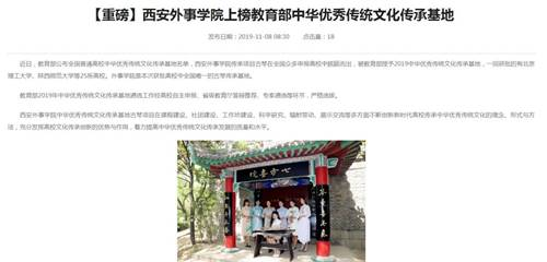 西安外事学院坚持以学校获批陕西“一流学院”建设单位、全国党建示范高校创建、教育部首批“一站式”学生社区综合管理模式建设试点单位等为契机,把传承弘扬优秀传统文化作为提高人才培养质量、推进学校建设与发展的战略举措,全力推进文化建设,充分发挥文化育人功能,固本铸魂,立德树人。中华优秀传统文化是中华民族最稳定的精神基因,传承弘扬和广泛开展优秀传统文化教育,有利于提高学生传统文化素养,增强民族文化认同感,坚定文化自信,切实培养担当民族伟大复兴时代新人。