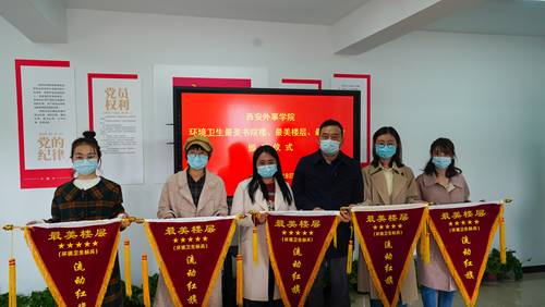 西安外事学院经各楼自查、书院互查、学工部抽查、督导办督查等环节,评选出首批卫生最美书院楼2个,分别为正蒙五院4号楼、正蒙二院11号楼,最美楼层10个,最美宿舍30个。