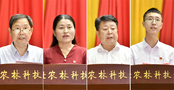 校领导为以上先进个人和先进集体颁奖。先进基层党组织代表康振生、优秀党务工作者代表刘桂玲、优秀教师共产党员代表海江波、优秀学生共产党员代表施宇先后发言,共同表达对党百年华诞的祝福和响应党中央号召奋进新时代、再立新功的决心。