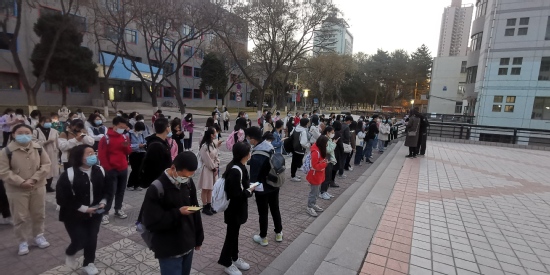 “我们辅导员老师挨个点名,不能落下一名同学。大家全程护送同学们到考场。等考试结束,再把大家平安地接回来。疫情没有打乱我们生活的节奏,只要我们万众一心、同舟共济,校园一定会恢复往日生机。”参加接送组织的辅导员赵向东坚定地说。