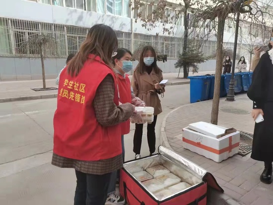 因为疫情原因,西北师范大学兰天学生公寓2号楼、知行校区研究生公寓2号楼、4号楼、5号楼南楼西楼等楼宇一度被封闭,全校超过6000名学生的一日三餐需要送到公寓楼里,兰天公寓还要将生活所需的开水用暖瓶送到封闭楼宇里。面对疫情造成的困难,学校动员各学院分工负责,组织学生、志愿者为被封闭的学生送餐、送水,学校后勤保障部、创新创业学院全力以赴保障后勤供应。