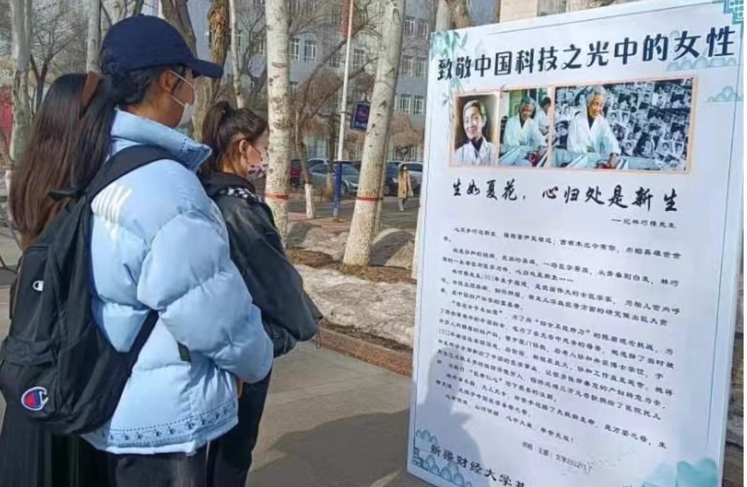 2023年3月8日,新疆财经大学基础学院美育中心党支部和汉语言文学党支部共同策划举办了“逆流而上 星海织纬——致敬中国科技之光中的女性”三八国际妇女节主题活动。