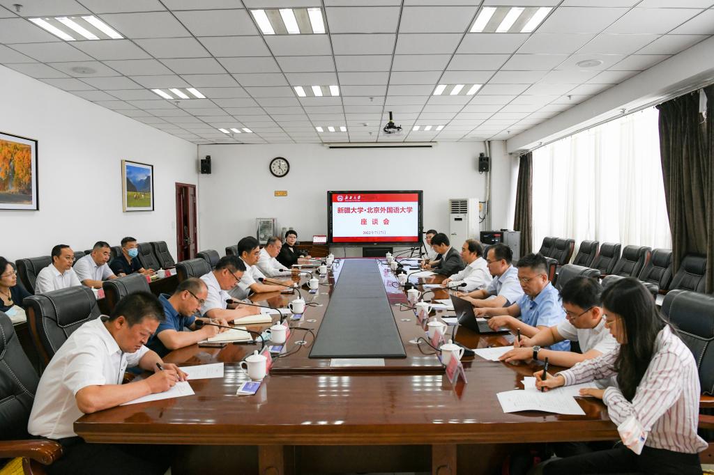 7月7日,北京外国语大学党委书记王定华一行前来我校访问交流。新疆大学党委书记许咸宜,党委副书记、校长姚强参加相关活动。