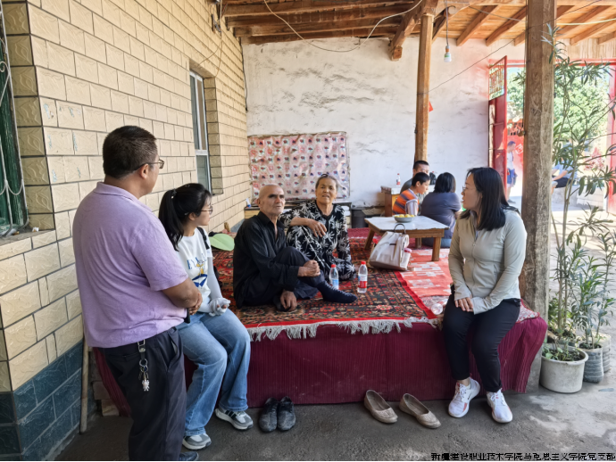 其余研学成员则分成四组,分别前往甬库同心村、阿热吾斯塘村、柳树村、吐格其村开展多样化的实践活动。在各村,老师们深入村民家中进行社会调研和家访,与村民拉家常、问生计,详细了解他们的生产生活情况、家庭收入来源、子女教育状况等,倾听他们对乡村发展的意见和建议,向村民宣传党的乡村振兴政策、民族团结进步知识等,进一步增进了与基层群众的感情,为后续思政教育实践积累了丰富的第一手资料。