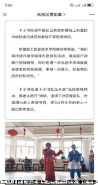 3月14日下午,春风拂面,信息与软件分院党总支教师及学生入党积极分子43人,在分院专职副书记李勇老师、分院分团委书记高国华老师的带领下,开展了一场温暖的学雷锋主题党日活动,活动受到米东区零距离融媒体的报道。