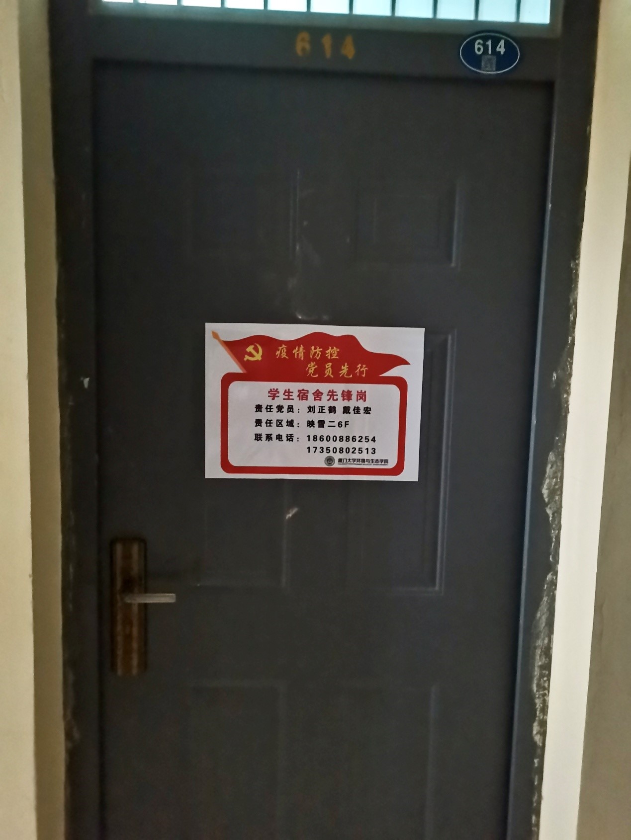 当前,厦门市疫情防控形势严峻复杂,为严防疫情输入,守护平安校园,9月18日,厦门大学环境与生态学院党委第一时间启动“疫情防控 党员先行”系列活动,通过设立“线上教学先锋岗”“学生宿舍先锋岗”“健康信息先锋岗”“爱心保障先锋岗”四个先锋岗,搭建三级网格管理系统,成立若干突击队,开展多样活动等,组织广大党员积极投身疫情防控工作中,用自己的行动让党旗在疫情防控歼灭战的第一线高高飘扬,让党徽在疫情防控阵地上熠熠生辉。