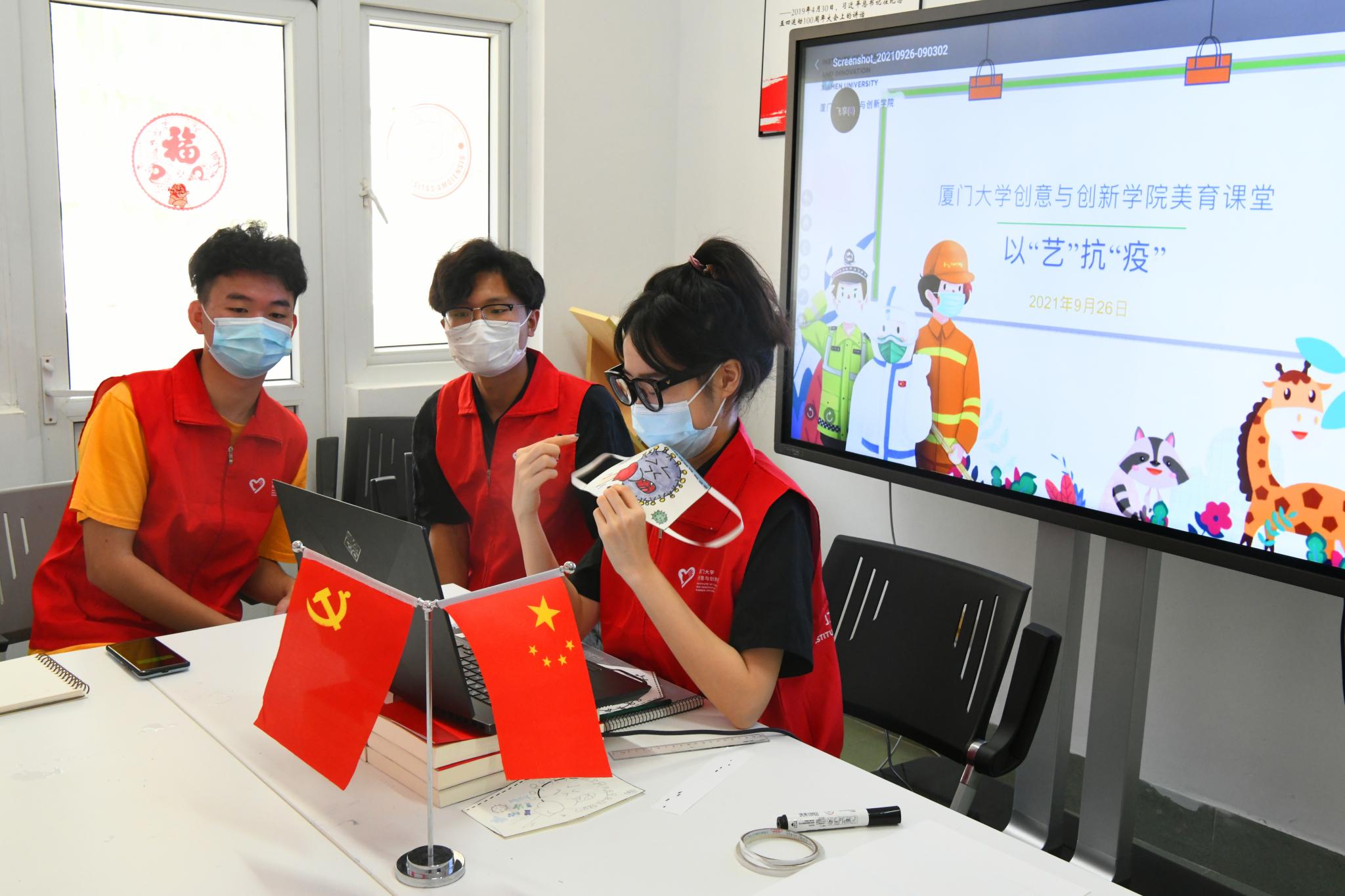 9月26日,由厦门大学创意与创新学院第一党支部发起,学院“党团青年先锋队”和青年志愿者协会第一时间响应的七彩课堂“以艺抗‘疫’”美育线上活动成功举办。活动面向厦门大学各附属医院、漳州开发区第一医院和学校后勤安保人员等抗“疫”一线工作人员子女,296名小学员全情参与,整个课堂持续1个半小时,线上互动频频,获得家长和小学员们的纷纷点赞,取得良好社会反响。