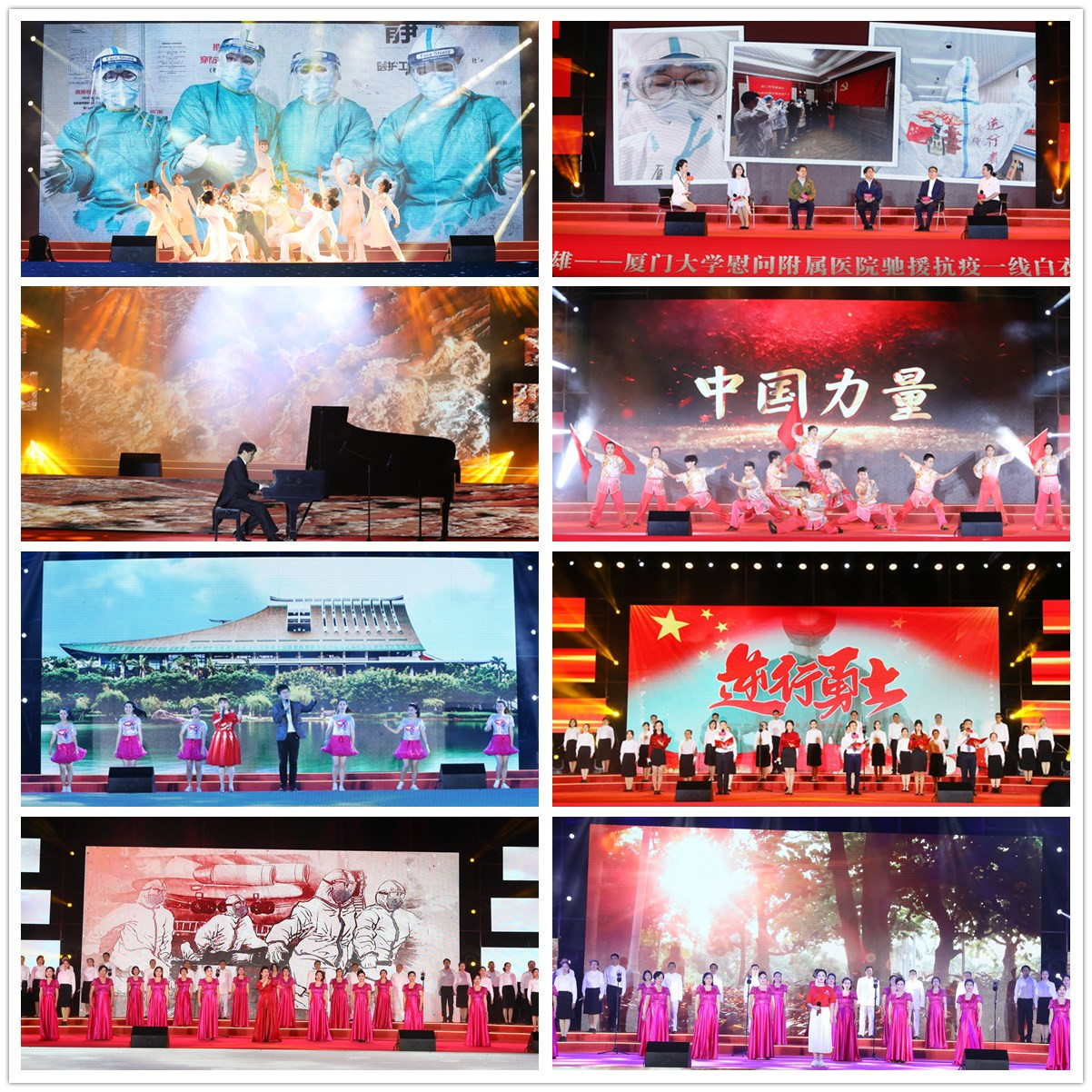 舞蹈《出征——向党旗致敬》、钢琴独奏《黄河颂》、武术表演《力量》、青春歌曲联唱《你笑起来真好看》、诗朗诵《你是我的英雄》、歌曲《英雄赞歌》一一上演,生动再现了广大医护人员舍小家、为大家,驰援抗疫一线与死神搏斗,圆满完成任务平安凯旋的一幕幕场景,展现了白衣战士听党指挥、坚守岗位、服务人民的勇毅与担当。厦大师生用自己的方式欢迎致敬不同战线的战疫英雄们。