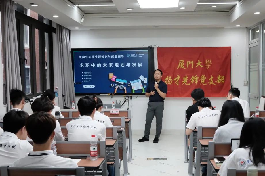 蔡宇老师以《求职中的未来规划与发展》为题,向“小扬才”们传授了职业规划、简历制作及面试等技巧。他建议“小扬才”们科学运用专业测评,提高自我认知,明确求职目标,擘画职业发展。同时,蔡宇老师详细讲解了简历的制作方法,强调“小扬才”们在制作简历时要处理好基础信息、核心能力和增值模块的比重,适时、适岗调整简历内容,凸显岗位匹配度、突出核心优势、打造个人品牌。此外,蔡宇老师分享了面试的“台前幕后”,从面试前的准备、面试中的表现到面试后的跟进等角度出发进行了全方位、全过程的面试指导,叮嘱“小扬才”们在面试中要充分准备、实事求是、敢于表达,鼓励“小扬才”们多多参与面试“实战”,不断发掘自身潜力,更好更稳地走好求职之路。