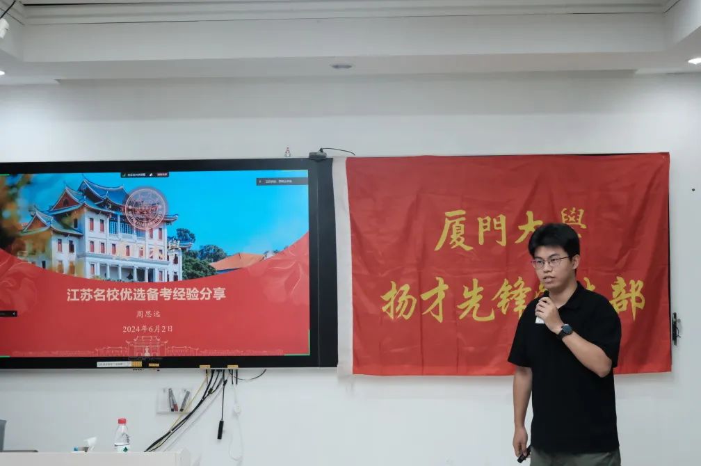第四期“扬才班”学员、2021级马克思主义学院硕士研究生周思远重点围绕江苏名校优选备考经验进行分享。周思远结合自身经历,从选调信息的获取与梳理、笔试学习心得和考察注意事项等维度,帮助“小扬才”们读懂选调政策、厘清选调流程、合理规划选调备考。他解答了备考中的常见问题,强调笔试备考要“重在提速、稳在心态、及时总结、查漏补缺”,呼吁“小扬才”们在考察期间要“讲真话、交真心”,充分展示个人能力和岗位匹配度。