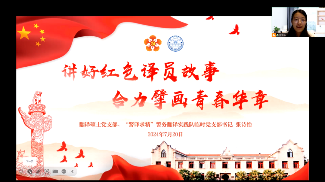 第六期“扬才班”学员、外文学院英语笔译专业2023级硕士生张诗怡以《讲好红色译员故事,合力擘画青春华章》为题,从支部建设、品牌创建的角度进行分享。她指出,加强支部建设,一方面要持续优化创新“固定党日+”活动形式,巧妙结合重要时间节点,组织开展党员领学、实地教学、志愿服务等活动;另一方面要注重突出支部特色,与朋辈支部、实践单位开展联学共建,不断丰富与拓展支部活动的内涵,打造一系列有影响力的特色品牌活动。