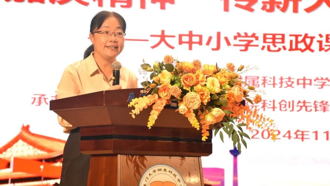 詹功祚为本次活动致开幕词。詹功祚表示,深入推进大中小学思政课一体化建设,关系到“培养什么人、怎样培养人、为谁培养人”这个教育的根本问题。长期以来,科技中学与厦门大学在开展思政教育、科技竞赛等方面保持着密切友好的合作关系,特别与厦门大学航空航天学院、厦门大学扬才先锋党支部开展了多场走心出“新”、反响热烈的思政“金课”。希望本次共建活动能够进一步拓展大中小学思政课堂,帮助科技中学学子进一步开拓航空航天视野、聚合科技报国力量,成长为让党放心、爱国奉献、担当民族复兴大任的时代新人。