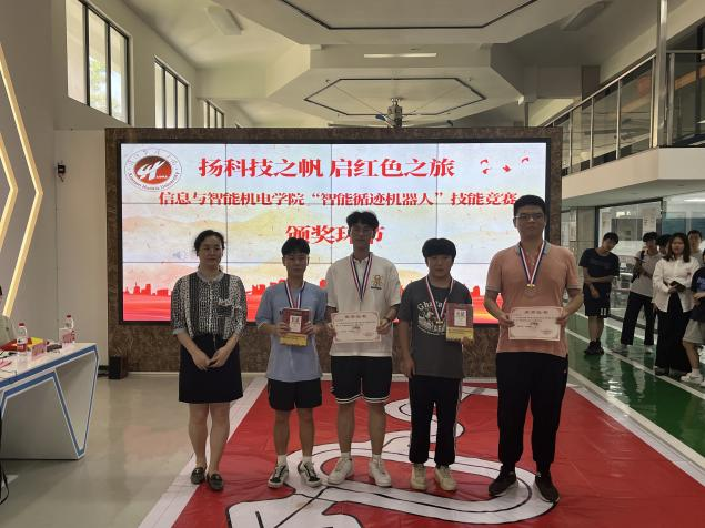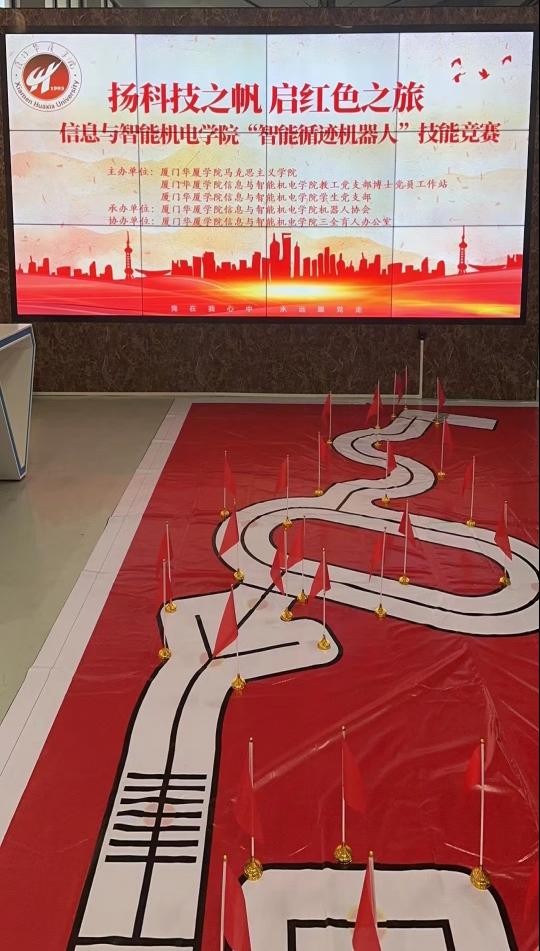为推进学习贯彻习近平新时代中国特色社会主义思想主题教育走深走实,引导学生传承红色基因、赓续红色血脉,汲取奋进力量,信息与智能机电学院教工党支部联合厦门华厦学院马克思主义学院开展“扬科技之帆,启红色之旅” 主题实践暨 “智能循迹机器人”技能竞赛活动。信息与智能机电学院教工党支部星级党员万瑾博士,教师谭文奇、廖耿斌、黄敏凤;马克思主义学院教师刘洪英、樊雅琴、刁敏参加活动,并担任有关环节的评委。