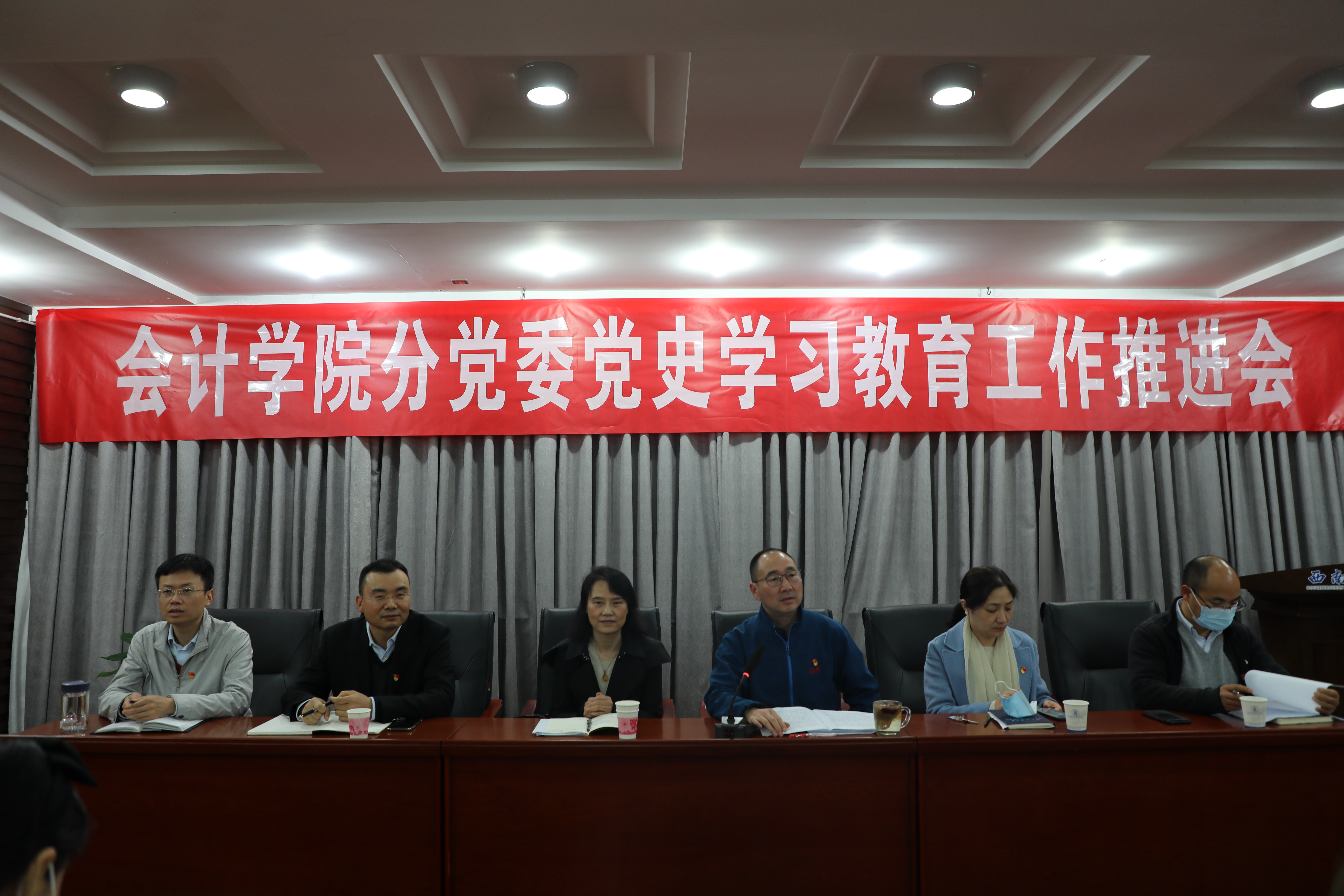 今年学校党委安排党史学习教育工作以来,会计学院积极响应踊跃参加,召开了多次学习会议进行部署和动员。刘晓彬书记说,为高标准高质量完成学院党史学习教育各项任务,在传达学校关于党史学习教育相关文件的精神与要求的同时,将抓实各党支部支委及党员的学习教育、以带动班团组织认真全面地完成党史学习教育的要求;强调了党史学习教育的重要性,申明了党史学习的目标要求:坚持学史明理、学史增信、学史崇德、学史力行;鼓励动员大家将集中学习和个人学习相结合、将党史学习创新性地融入各项工作,推动点的突破、线的联动和面的质改,由点入面系统性统筹学习;提出会计学院将力争做好示范带动作用,围绕学校党委《关于开展党史学习教育的实施方案》,从专题学习、政治引领、专题培训、实践活动及工作成果五方面规划学院开展党史学习教育活动的蓝图,注重工作与党史学习教育的融合、注重典型宣传与品牌建设重点突破。