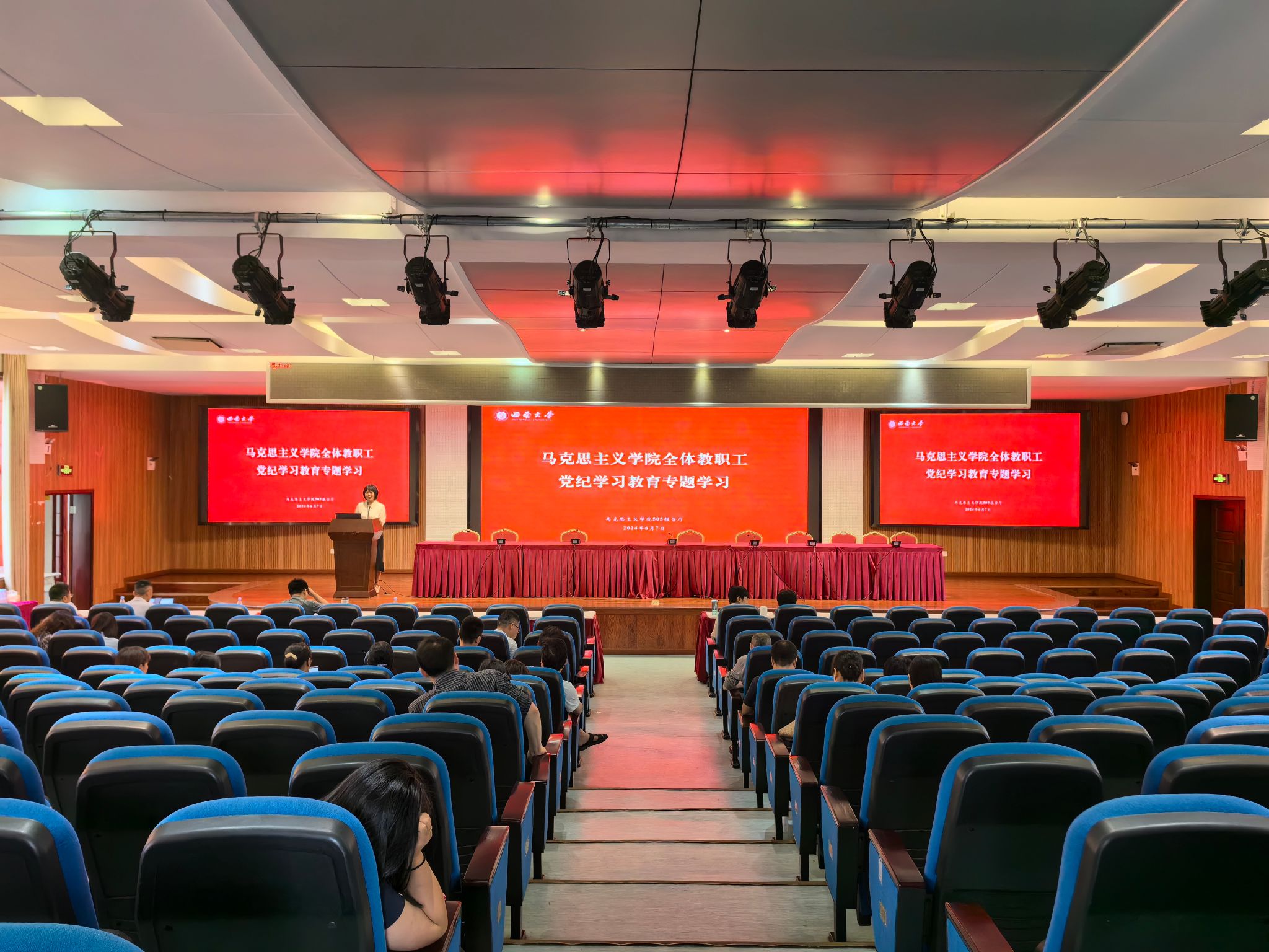2024年6月7日下午,学院召开全体教职工党纪学习教育专题学习,本次学习主题是“强化组织观念,严守组织纪律”。学院全体教职工参加,会议由学院党委副书记、纪委书记曾艳主讲。