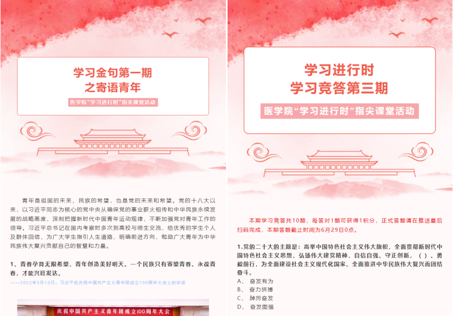6月7日至7月7日期间,学院微信公众号推出“学习进行时”指尖课堂活动