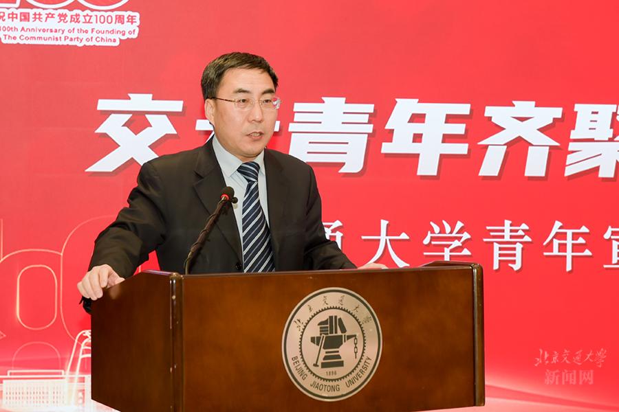 金秋十月,秋风送爽。2021年10月16日,“交大青年齐聚首 奋进强国新征程”交通大学青年宣讲团成立暨首场宣讲活动在北京交通大学红果园宾馆三层多功能厅举行,该宣讲团在中国高等教育学会宣传工作研究分会支持下,由西安交通大学倡导,北京交通大学、上海交通大学、西安交通大学、西南交通大学共同发起。中国高等教育学会副秘书长郝清杰,北京交通大学党委副书记、副校长孙守光,教育部思想政治工作司宣传教育处副处长王磊,教育部新闻宣传中心移动传播处处长杨晨光,宣传工作研究分会副理事长宁秋娅,宣传工作研究分会名誉监事长蒋朗朗,上海交通大学党委常委、宣传部部长胡昊,西安交通大学党委常委、宣传部部长成进,西南交通大学党委宣传部常务副部长汪铮出席此次活动。活动由北京交通大学党委常委、宣传部部长蓝晓霞主持。