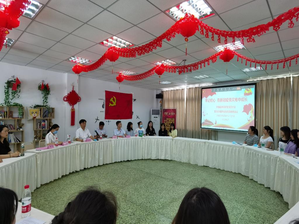 6月18日下午3点,外国语学院学生党员大会暨毕业生党员教育会议在外语角顺利举行。出席本次会议的有外国语学院党委书记杜宗良、党委副书记孙德刚、组织员任会、学生第二党支部书记彭希宁以及全体党员。会议由学生第一党支部书记李飞主持。