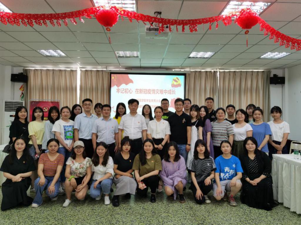 首先,学院党委书记杜宗良带领全体党员重温入党誓词,再次感受入党宣誓时的庄严承诺和坚定决心,在党旗下接受心灵的净化和洗礼。随后,杜书记以“牢记初心,在新冠疫情灾难中成长”为主题,向全体党员同志作主题教育。杜书记从“入党为什么”“为党做什么”“给党留什么”开篇,从知与行两个方面向党员同志们讲解了党性信仰的重要性。杜书记指出当前学生党员群体中存在着“组织与思想不统一、入党动机不纯、党员先进性不足”等现实问题,究其原因在于教育管理有待加强,育优推优有待改善。为此,应从做实党建“四个环节”、加强党建队伍建设 、加大对共青团工作的扶持指导力度、实施党员联系入党积极分子培养考察制度、加强党员的“四个意识”教育、塑造捍卫党员品牌等六个方面着手。最后,杜书记对于毕业生党员寄予厚望,希望同学们牢固树立“在过程中书写结局”的观念,理性做事、悟性做人,学会合作,保持健康,将“为人民服务”的宗旨落实到以后的学习和生活中去。