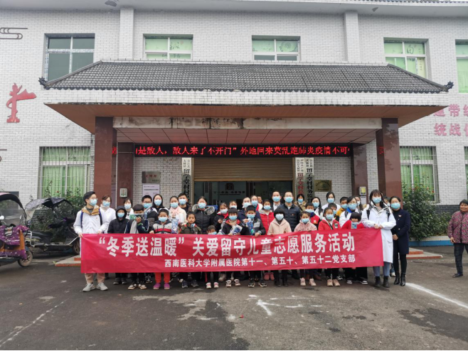 2021年12月19日,西南医科大学附属医院第十一、第五十、第五十二党支部前往泸州市合江县大桥镇留学堂村开展“冬季送温暖”关爱留守儿童志愿服务活动。
