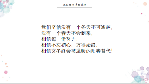 不忘初心,方得始终,我们唯有怀揣初心,坚持不懈的去努力,才能万丈光芒,一展蓝图,为我们的国家、社会贡献出一份自己的力量!