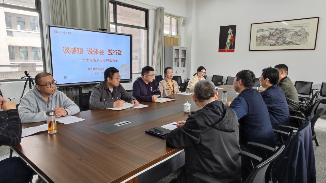 10月16日上午,全国人民翘首以盼、世界瞩目的党的二十大在北京隆重开幕,习近平总书记代表第十九届中央委员会向大会作报告。鲁艺学院教师党支部全体党员干部结合实际情况,认真收看、聆听习近平总书记代表第十九届中央委员会向党的二十大作的报告。听完报告后,大家深受鼓舞、倍感振奋。12月18日,支部举行了《谈感想、说体会、践行动——二十大报告学习心得座谈会》,全体党员结合自己的工作实际畅谈心得体会。
