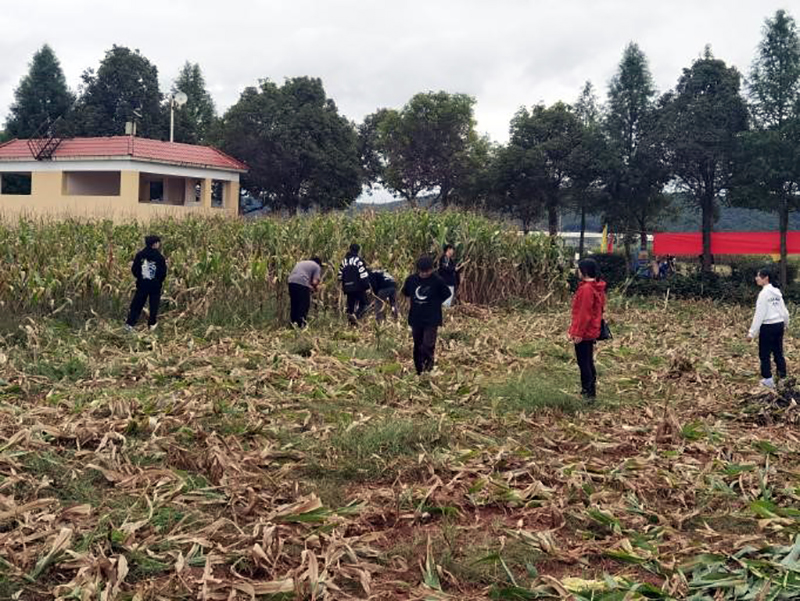 经过一上午的劳作,班级完成了一号田的玉米采收工作。