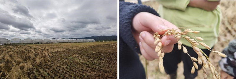 班级同学参与了稻谷脱粒环节的工作。在老师的指导下,大家将收割下来的稻谷放入打谷机中,机械的咔嗒声响彻整个农田,缀满金黄色稻谷的稻穗转眼之间变成了一粒一粒金黄色的稻谷,闪耀而美丽。