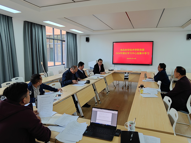 2024年3月15日,食品科学技术学院党委在二楼会议室召开理论学习中心组2024年3月集体学习。学院党政领导班子成员李世俊、和劲松、董文明、黄启超、方崇业、字成庭、谭超参加了学习。