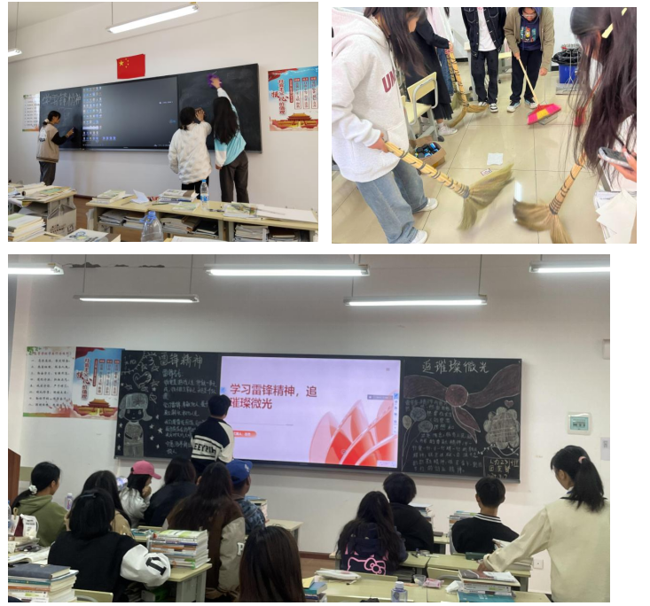 3月7日,人文学院团总支组织各班级在教室内开展“学雷锋精神,追璀璨微光”主题教育团日活动,组织青年学生集体学雷锋日记,说雷锋故事,唱雷锋歌曲,以清洁教室卫生活动践行雷锋精神。