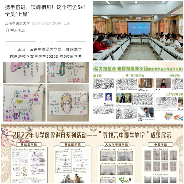 在学校高位推动下,重点对主城区校舍长期以来存在的住宿拥挤、安全隐患等问题进行综合整治,极大改善学生住宿条件。健全“1中心+5平台”工作机制,加快推进“数字学工”信息化系统建设。“云中和合‘一站式’学生社区”项目被列为全省高校首批试点,连续2年被评为A级。呈贡校区二期学生社区建成2500㎡共计40个学生活动功能房,党建、管理、服务、教育力量全面下沉学生一线。工作案例《君臣佐使配良方、和合精诚育新人,建设具有中医药特色的“一站式”学生社区》获评高校“一站式”学生社区风采展示活动优秀成果,从政策导向、工作体系、资源配置、条件保障上全方位发力,形成学校搭台、学院唱戏、校企共建、师生共赢的生动局面。