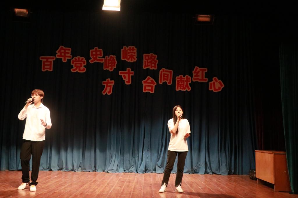 本科生第十党支部把观众们带回1921年的上海法租界望志路106号和南湖嘉兴的一艘红船上,再现了中共一大的召开,中国共产党的正式成立,犹如一轮红日在东方冉冉升起,照亮了中国革命的前程。