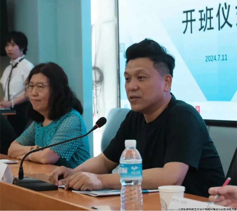 首先,开班典礼由北京服装学院艺术设计学院院长车飞教授致开幕词。他感谢国家艺术基金对北京服装学院此次人才培养项目的肯定与认可。恰逢北京服装学院建校65周年,学校始终坚持理论与实践相结合的教育理念,培养了大批优秀的纺织服装和艺术设计的人才,并在深厚的艺术底蕴基础上积极探索协同创新与学科交叉的发展道路。在本次培训项目中,北京服装学院将利用自身的优势,调动一切可以调动的资源,确保培训活动的高质量和高效率。最后,车飞教授向国家艺术基金管理中心和项目授课专家表示衷心感谢,并期待在未来共同推动赋能城市更新与与文化旅游艺术设计的创新发展。