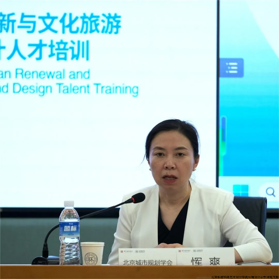 随后,北京服装学院艺术设计学院教授曹荷红作为项目负责人,介绍了培训项目的课程来由、意义、课程内容以及招生情况。项目学员来自全国各地,汇聚了十几个专业方向的人才,形成一个真正的跨学科大平台。曹荷红教授表示期望通过此次项目,尝试改变之前一直以建筑和工程的方式引领的改变城市面貌的方式,转变为以艺术和设计的方式来探索更新建设城市的创新模式,从不同层面、层次、角度跨学科地寻找城市更新的发展路径。