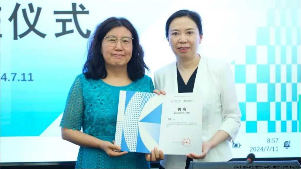 最后由北京服装学院科技处沈阳义老师宣布2024年国家艺术基金《赋能城市更新与文化旅游艺术设计人才培训》项目开班。项目负责人曹荷红教授颁发录取通知,并向项目教师代表颁发聘书。