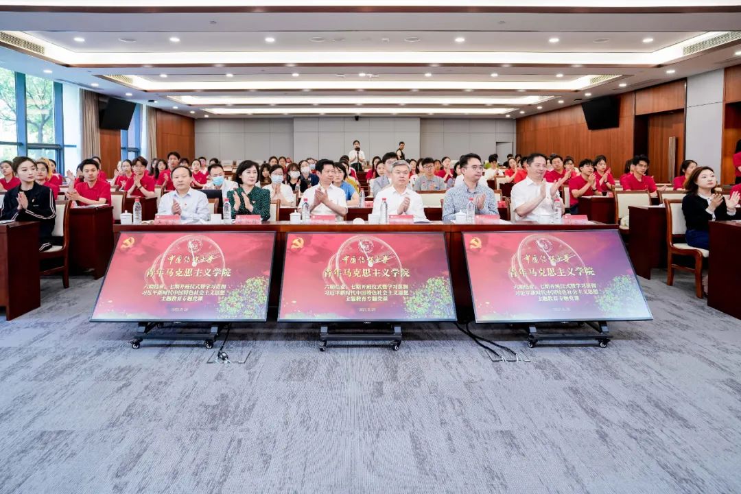 教育部主题教育第三巡回指导组组长赵凌云,教育部主题教育第三巡回指导组组员、联络员陈哲到场指导。中国传媒大学党委书记、青年马克思主义学院院长廖祥忠,党委常委、组织部部长徐红梅,马克思主义学院党委书记王维家,马克思主义学院院长、青年马克思主义学院执行院长刘东建,校团委书记、青年马克思主义学院执行院长郑丹琪出席活动。