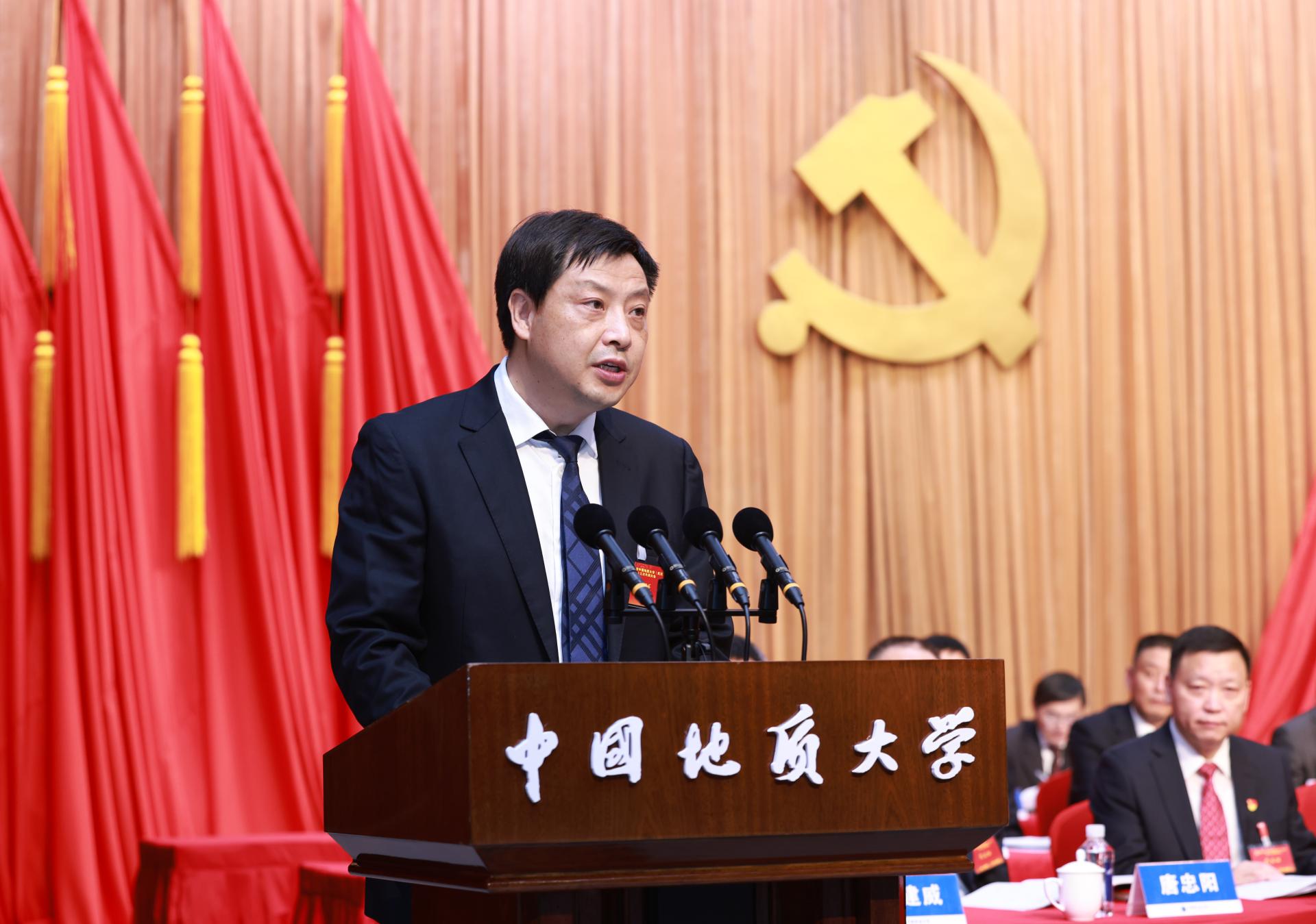 7月8日上午,中国共产党中国地质大学(武汉)第十三次代表大会在南望山校区弘毅堂隆重开幕。党委书记黄晓玫代表中国共产党中国地质大学(武汉)第十二届委员会作题为《砥砺奋进 开拓创新 加快建设地球科学领域国际知名研究型大学》的工作报告。
