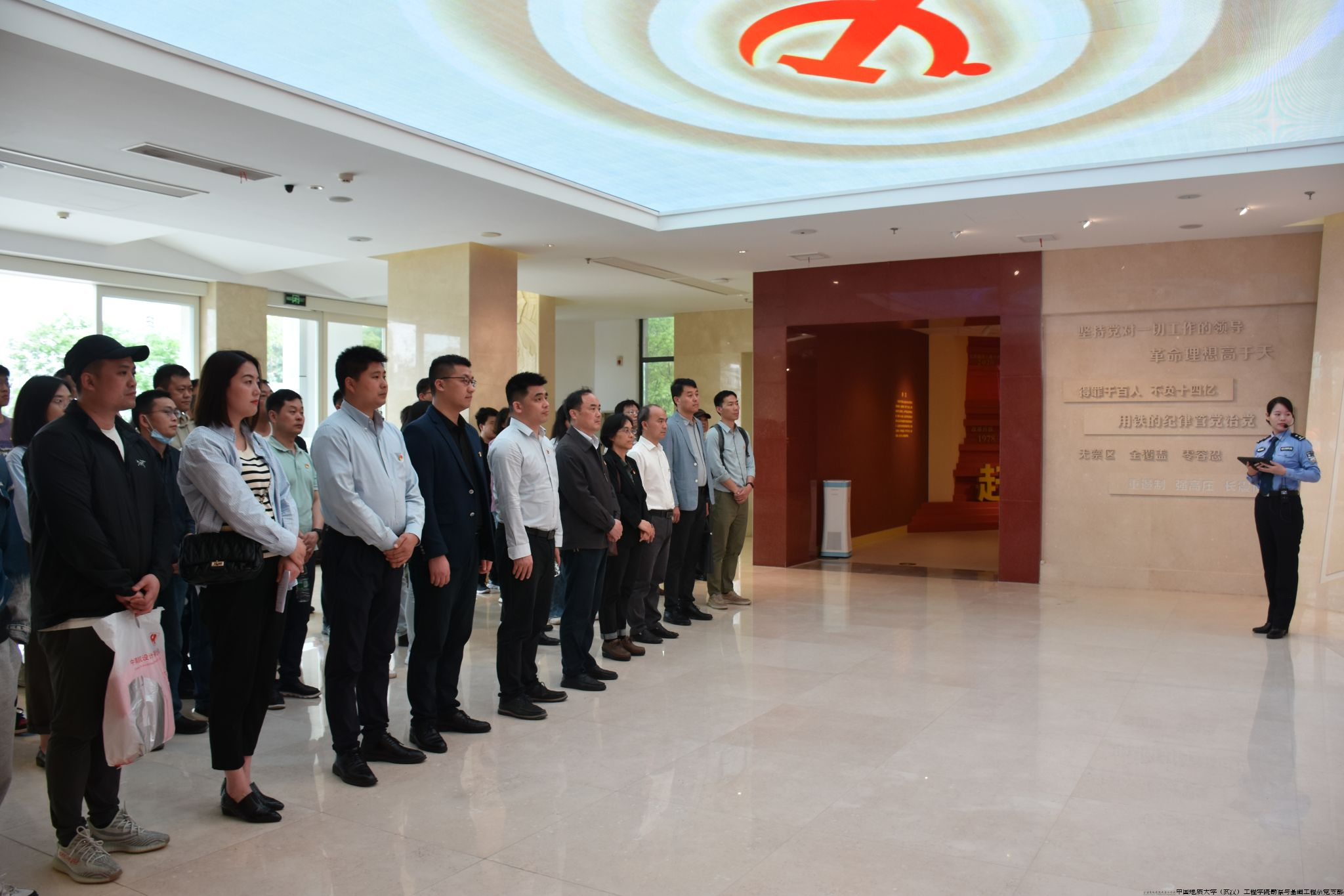 2024年4月16日,为深入学习贯彻习近平新时代中国特色社会主义思想和党的二十大精神,加强党风廉政建设和党纪学习教育,增强领导干部廉洁自律意识,筑牢拒腐防变的思想防线,校园规划与基建处党支部与工程学院党委理论学习中心组成员、师生党支部党员代表、学生代表40余人前往湖北省党风廉政警示教育基地,联合开展主题为“清正廉洁守初心,警钟长鸣筑防线”的党风廉政警示教育研学活动。