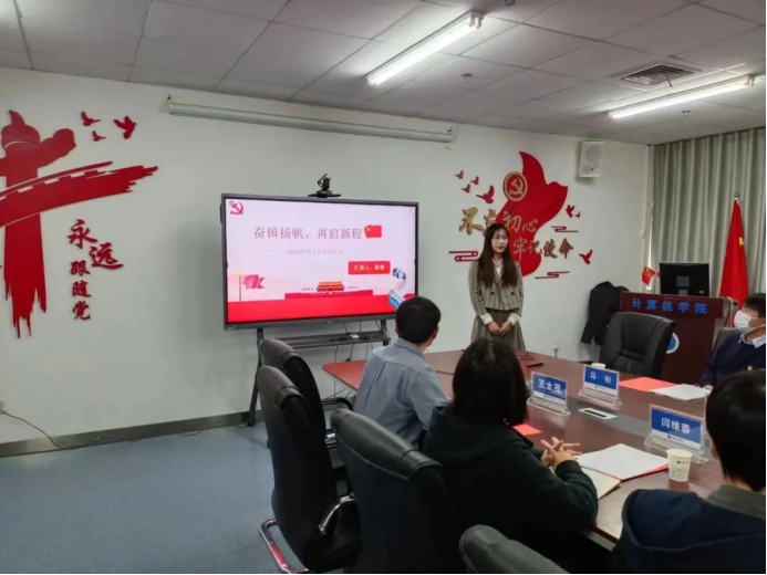 首先由王太茂介绍活动内容及参会嘉宾,并对各位老师的到来表示热烈欢迎。随后,计算机学院各学生党支部书记开展交流研讨。本次研讨会学院根据各支部特点从26个学生党支部中遴选出9个党支部,针对支部建设情况、特色活动开展、存在问题与后期展望等方面进行交流。如博士研究生党支部面向全院开办学术论坛,指导低年级同学开展科研和学科竞赛;本科生计科第二党支部积极参与社会实践,利用专业技术开发助农小程序等助力乡村振兴;2020级硕士联合党支部探讨了党员发展考核量化标准,将考核标准与支部建设有机结合。