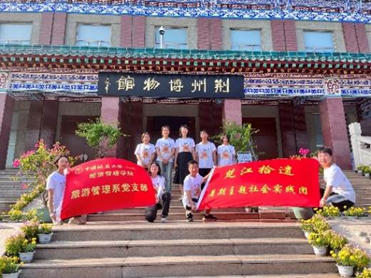 今年暑期,经济管理学院旅游管理系党支部书记李江敏老师继续带领学生团队“楚江拾遗”开展长江大保护系列社会实践,在前两年开展了武汉、宜昌调研基础上,7月1日师生奔赴荆州进行长江国家文化公园调研实践。通过对荆州博物馆、非遗传承馆、荆州古城等文化遗产和文物的调研,以及与非遗传承人和文创匠人们的访谈,师生对长江国家文化公园文化遗产旅游价值共创与产业协同发展都有了深入认识,明确了专业使命,坚定了文化自信。