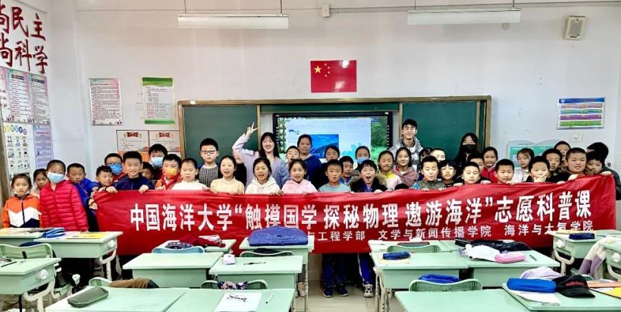 11月11日,中国海洋大学“触摸国学 探秘物理 遨游海洋”志愿科普课第一期顺利举行,7名志愿者共3支小队走进青岛市红岛中心小学和上马街道西部中心幼儿园,为同学们送去了3堂以“海洋”为主题的精彩课程。志愿者结合自身专业所学,以视频、手工等多种形式向同学们展示了丰富的海洋世界。