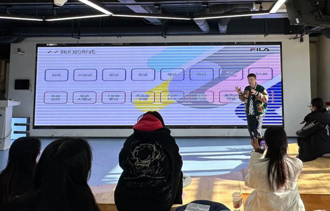何经理向同学们展示了一家成熟的公司给求职者设置的面试形式,包括“简历初筛、AI面试、初试、复试、笔试、终试、沟通offer、待入职”八个环节,八个环节涉及企业对面试者简历信息、应对及解决基本问题、个人形象气质、组织能力、潜力性格等多种维度的考察。