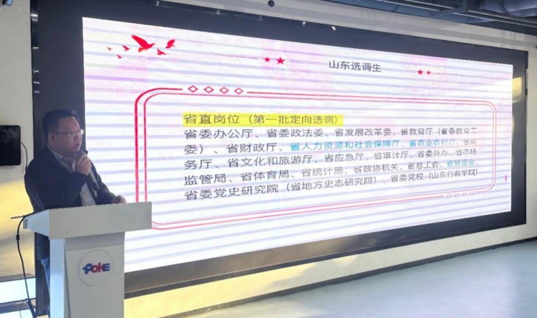 首先,吴伯颢老师介绍了什么是选调生,系统性地论述了选调生身份在当下的优势,并讲述了选调生与不同公务员的区别。随后,吴伯颢重点突出山东选调生“优选、优选、优用”,用三个“优”简练概括出山东选调生的特点。