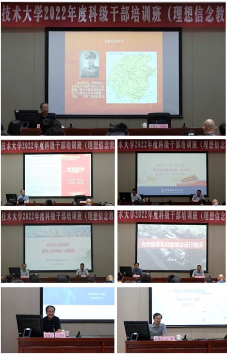 辅导报告围绕大别山精神,丝路精神,结合学校、附属第一医院、合肥国家实验室的发展历程,以及意识形态工作和如何提高公文写作能力,组织学员聆听了《鄂豫皖革命根据地的光辉历程》、《丝路上的大国情怀》、《与党同行 心怀“国之大者” 建设中国特色世界一流大学》等7场专题讲座,引导学员感悟真理伟力、增强前行动力,弘扬光荣传统、赓续红色血脉,加强学员对国情校情的了解和履职能力的提升。