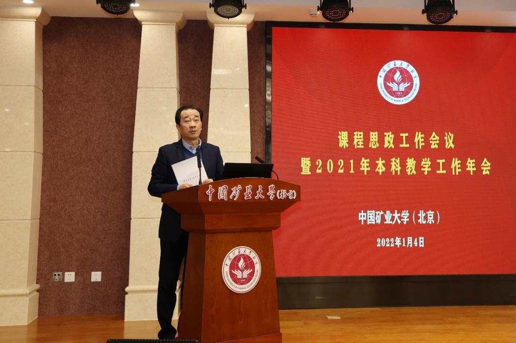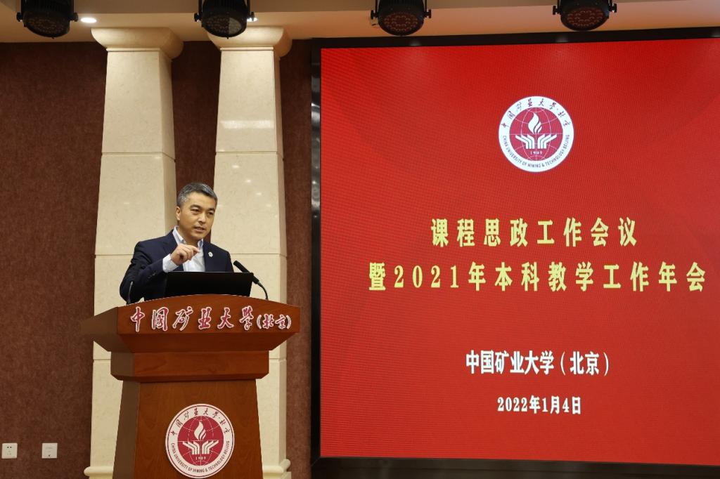 新年伊始,2022年1月4日下午,学校在福中苑报告厅召开课程思政工作会议,深入学习贯彻党的十九届六中全会精神,扎实推进党史学习教育,全面落实立德树人根本任务,强化思想引领和课程育人作用,充分发挥教师队伍主力军作用,切实提高人才培养质量。校党委书记徐孝民,校长、党委副书记葛世荣,校党委副书记王忠强,校党委副书记、纪委书记董晞,副校长范中启、王家臣、刘波、崔希民出席会议。本科教学督导组专家,学校相关职能部门负责人,各学院书记、院长、分管本科教学副院长、分管研究生教学副院长、教学秘书,近年来获得国家级、北京市教学荣誉的教师代表等有关人员参加了会议。王家臣主持会议。